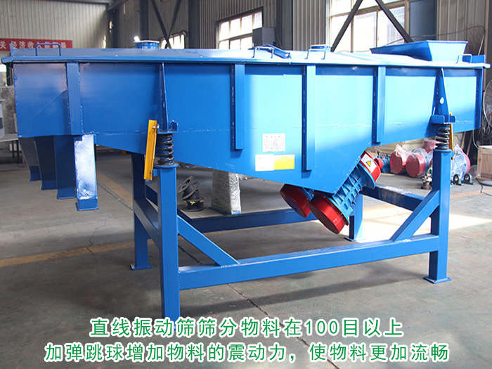2、直線振動(dòng)篩篩分物料在100目以上的,物料流動(dòng)性較小的物料,是需求加彈跳球增加物料的震動(dòng)力,使物料順暢的篩分下來。