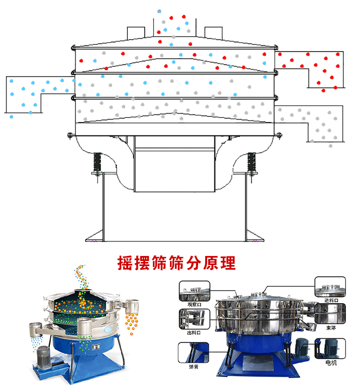 搖擺篩是輕微的橢圓搖擺運(yùn)動(dòng),不存在高速振動(dòng),對物料影響很小,不會破壞物料形狀,大大提高了物料的成品率。