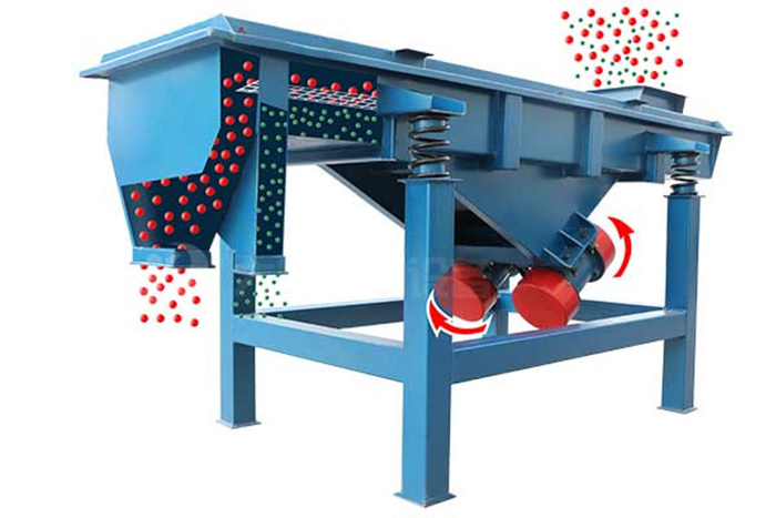 直線型振動篩兩電機軸相對篩面有一傾角,在激振力和物料自重力的合力作用下,物料在篩面上被拋起跳躍式向前作直線運動,從而 達到對物料進行篩選和分級的目的??捎糜诹魉€中實現(xiàn)自動化作業(yè)。