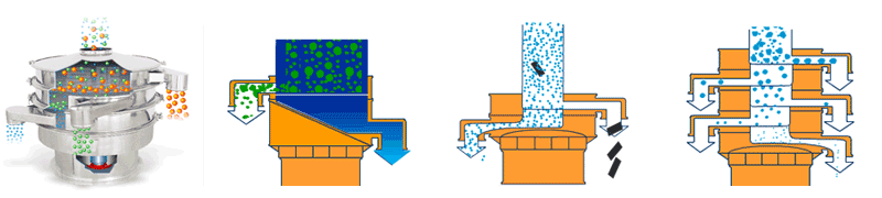 應(yīng)用 | 要用于物料原料的篩分和成品的最終生產(chǎn)檢驗(yàn),可以去除產(chǎn)品中的結(jié)塊和污染物,一次操作最多可提供5級(jí)分級(jí)。 | 適合高粘性、高靜電細(xì)粉,篩分精度可以提高80%以上,產(chǎn)量提高2-5倍。 | 模擬人工篩分的動(dòng)作,產(chǎn)生了水平和投擲的三維滾動(dòng)運(yùn)動(dòng),適用于500目以內(nèi)的細(xì)粒狀物料,篩分精度提高了90-95%,產(chǎn)量是圓形振動(dòng)篩的5-10倍。 | 適合一般的粗略篩分或除雜,的進(jìn)、出料口設(shè)計(jì)在同一垂直方向上,這樣會(huì)加快物料的排料速度,處理量是普通圓形振動(dòng)篩的2-5倍。 | 經(jīng)常用在液體過(guò)濾行業(yè),可去除液體或懸浮物中存在的不需要的顆粒,當(dāng)然也是可以作為粉末除雜??捎迷谔幚砹枯^小的工廠或小型作坊。 |